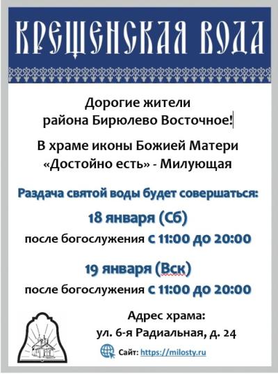 19 января (Вск) после богослужения с 11:00 до 20:00